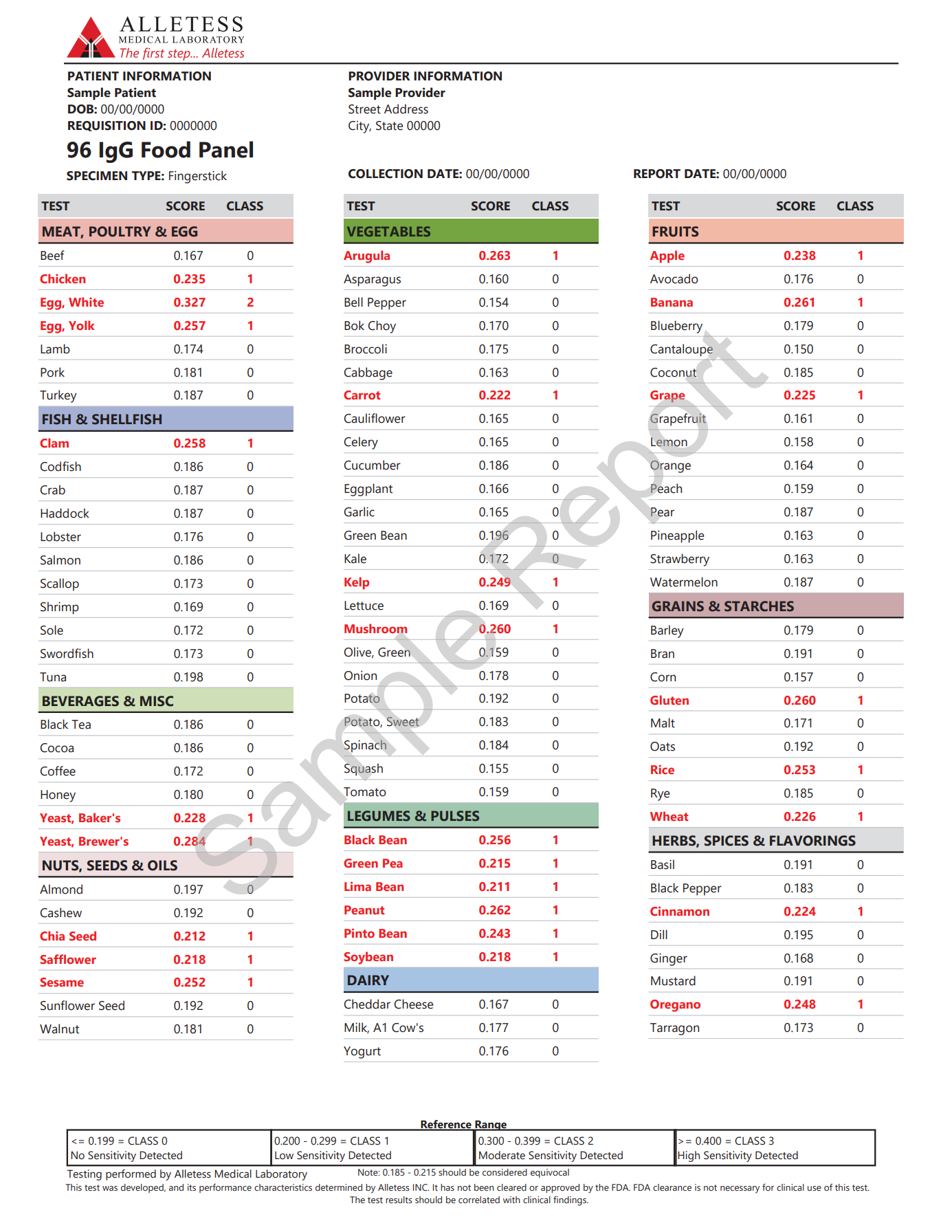 It is important to emphasize that the 96 Food Sensitivity IgG FingerStick Test is not a diagnostic tool for food allergies or intolerances. Instead, it provides insights into IgG-mediated food sensitivities, which may help guide dietary exploration in collaboration with a healthcare provider.