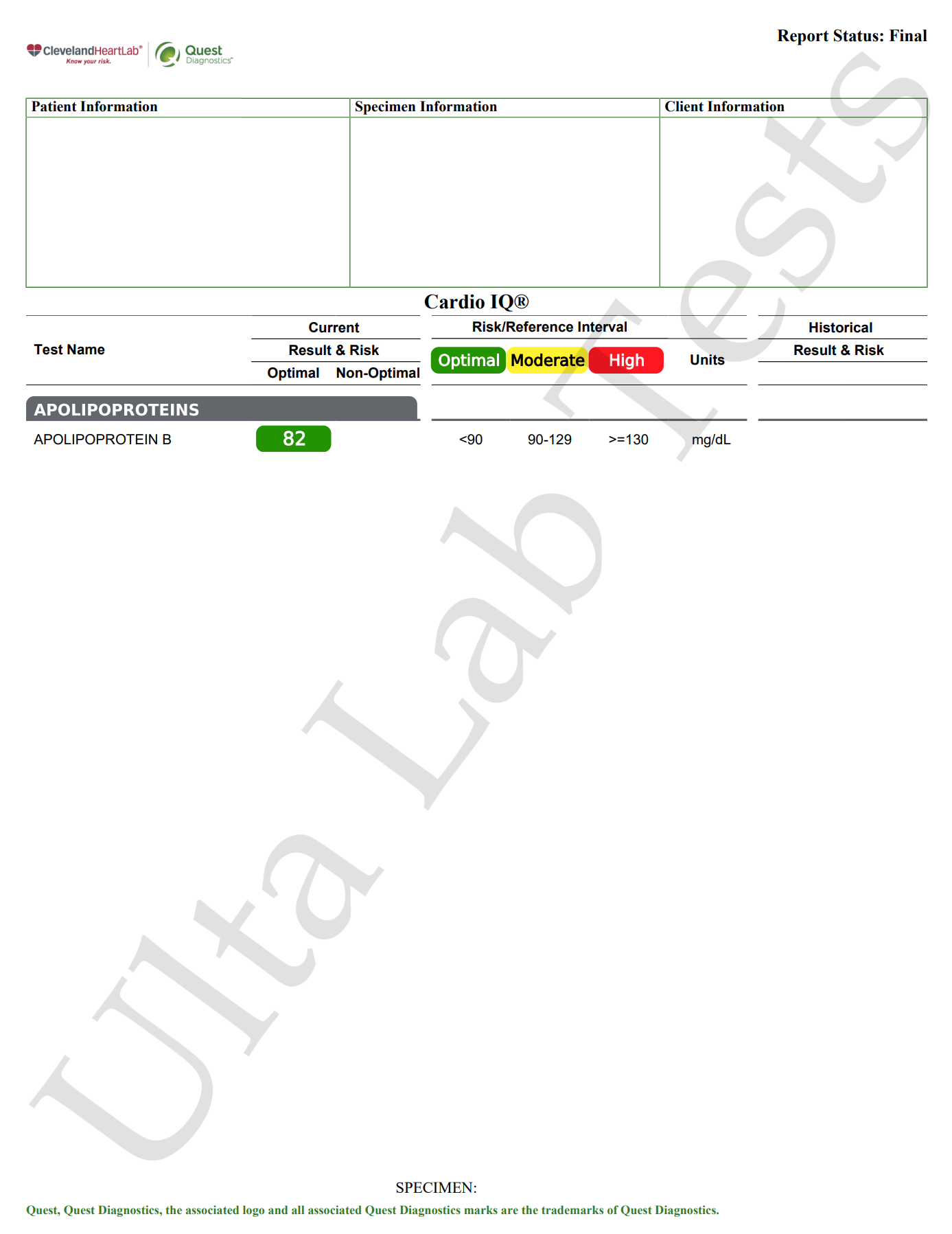 It's important to note that the interpretation of Apolipoprotein B test results should be done in conjunction with a comprehensive evaluation of the patient's medical history, clinical findings, and other lipid profile parameters. Healthcare providers use these results to personalize treatment plans and guide ongoing management for optimal cardiovascular health.